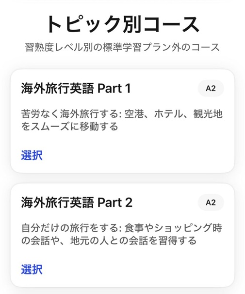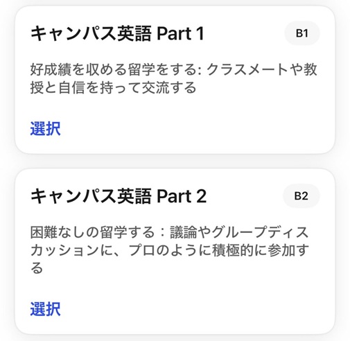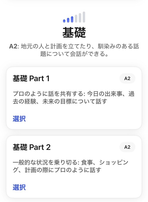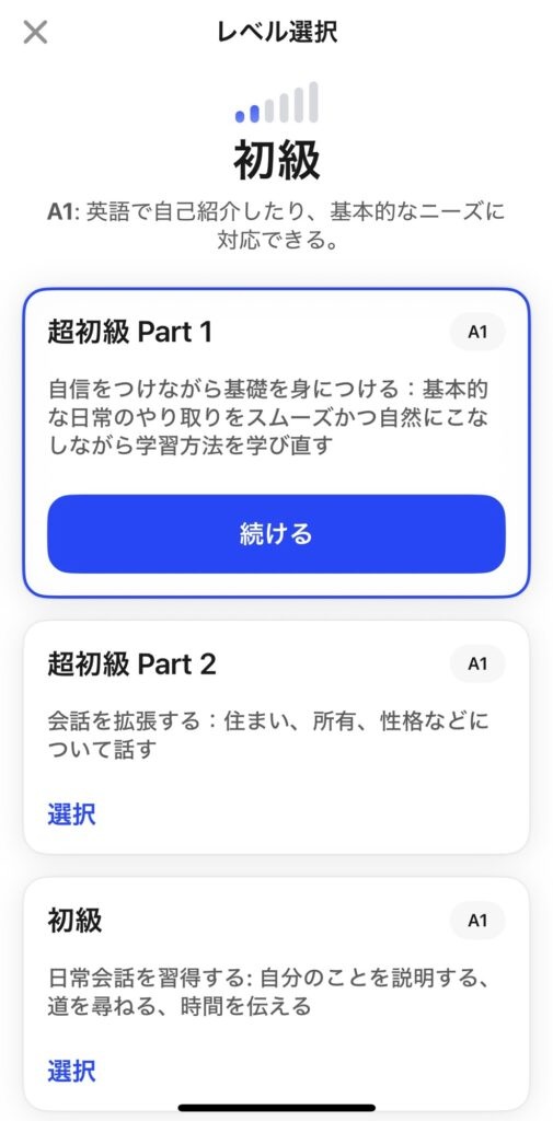 スピークを始めるとき、まず自分のレベルに合ったコースを選びます。