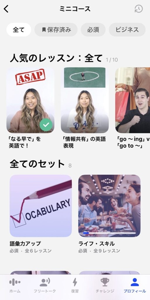 デイリーレッスンの内容を補強したいときや、特定の表現だけ集中して覚えたいときに便利です。